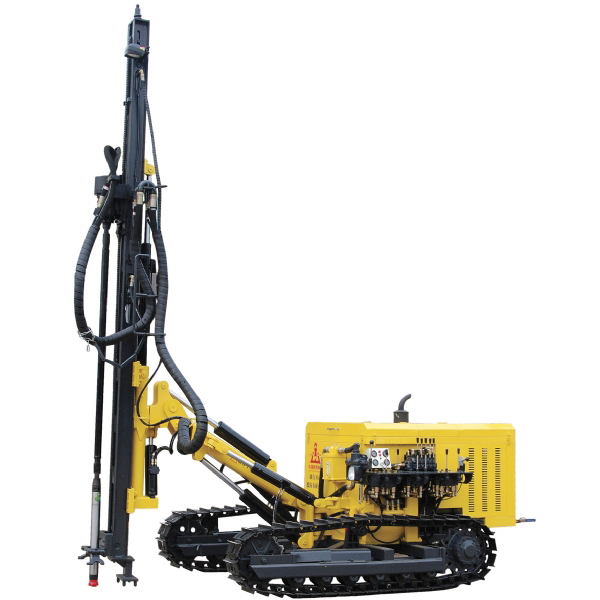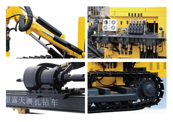KG920B 型露天潛孔鉆車在KY125型鉆車的基礎上,對液壓系統、鉆臂部件、行走部件等進行優化升級,加大動力(YC4D80)爬坡能力更強,鉆孔角度更合理,回轉和推進速度更快,馬達使用壽命更長,可靠性更好。