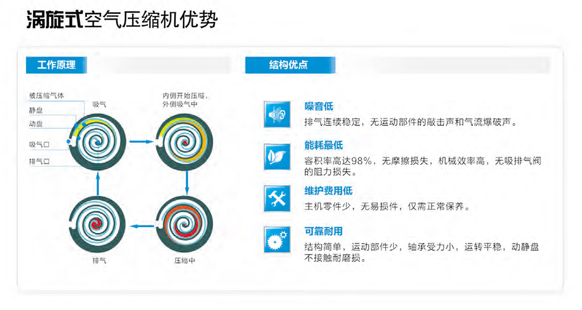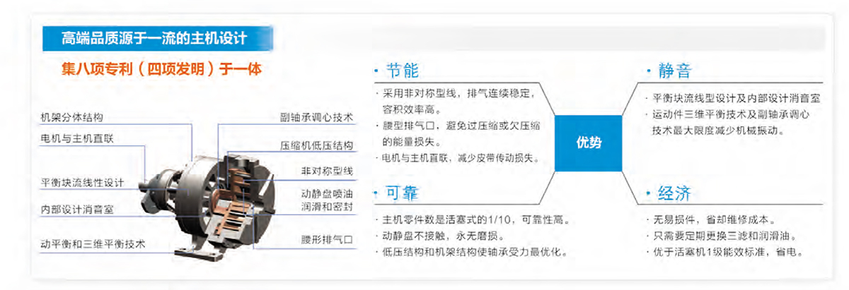 開山渦旋式空氣壓縮機(jī)技術(shù)優(yōu)勢: